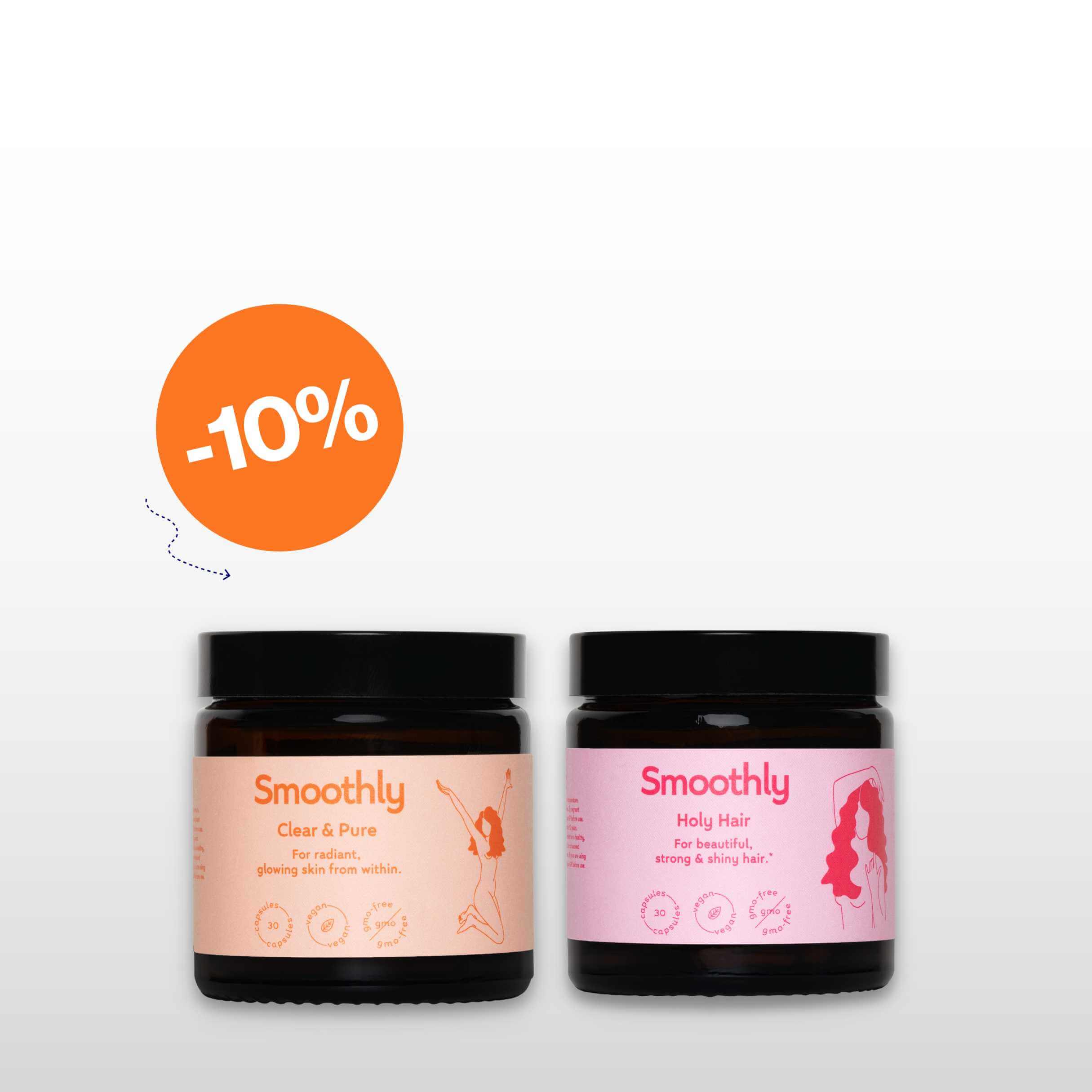 Ja, het is zeker mogelijk om onze producten met elkaar te combineren. De 3 overlappende ingrediënten in Holy Hair en Clear & Pure zijn Vitamine C, Vitamine B5 en Vitamine A (Beta Caroteen zet in ons lichaam om in Vitamine A). Combineer je Holy Hair en Clear & Pure dan zit je nog steeds ruim onder de veilige dagelijkse hoeveelheid. Andere productcombinaties kennen geen overlap.