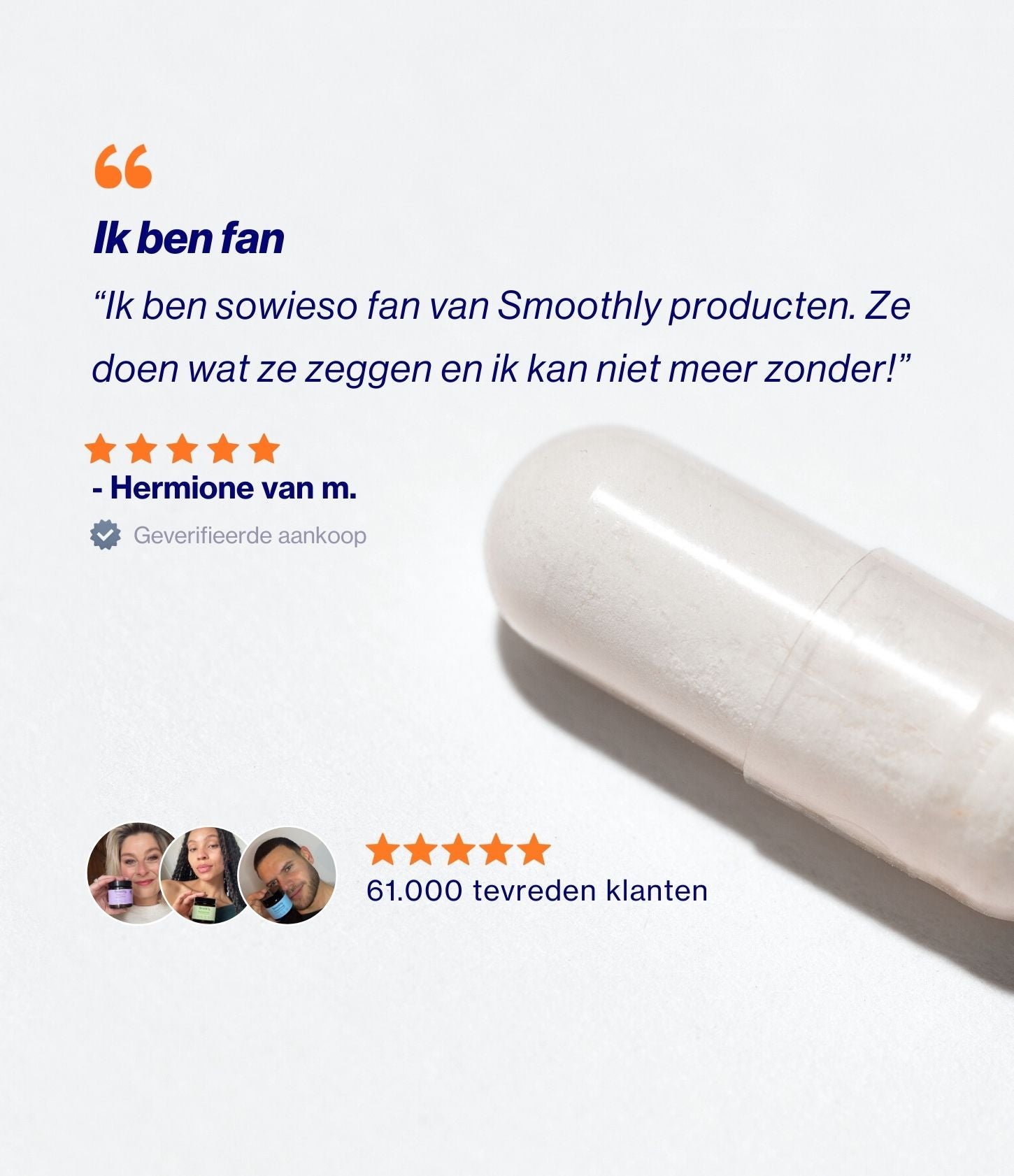 Jouw eerste bestelling van 30 capsules komt in een glazen potje. Deze kan je makkelijk bijvullen met onze papieren refills.